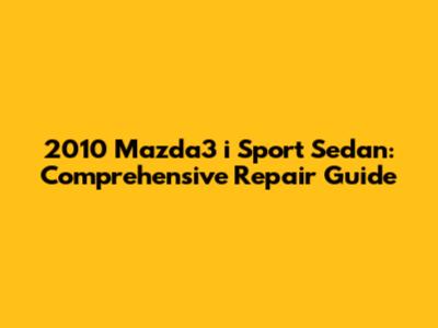 2010 Mazda3 I Sport Sedan: Comprehensive Repair Guide