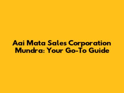 Aai Mata Sales Corporation Mundra: Your Go-To Guide