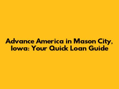 Hey guys! Need some quick financial assistance in Mason City, Iowa? You might have heard about Advance America, and you're probably wondering what they offer and how they can help. Let's dive into everything you need to know about Advance America in Mason City, Iowa, so you can make an informed decision.