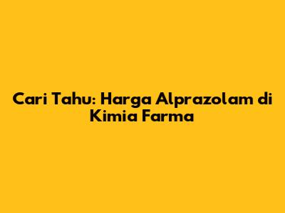 - Harga alprazolam biasanya bervariasi tergantung pada dosis dan jumlah tablet dalam kemasan. Umumnya, harga per tablet bisa berkisar antara beberapa ribu hingga puluhan ribu rupiah. Untuk lebih jelasnya, kalian bisa langsung cek ke apotek Kimia Farma terdekat atau melalui situs web resmi mereka. Ingat, selalu bawa resep dokter ya, karena alprazolam termasuk obat keras yang hanya bisa didapatkan dengan resep dokter.