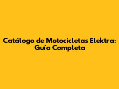 Catálogo De Motocicletas Elektra: Guía Completa