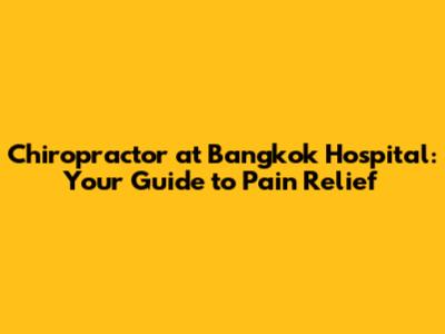 Chiropractor At Bangkok Hospital: Your Guide To Pain Relief
