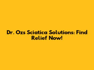 Dr. Oz's Sciatica Solutions: Find Relief Now!