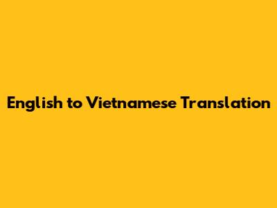English To Vietnamese Translation