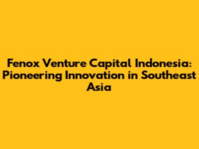Fenox Venture Capital: Investing In Indonesia's Future
