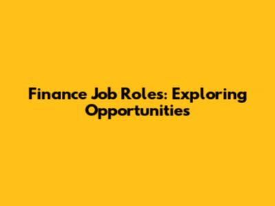Finance Job Roles: Exploring Opportunities
