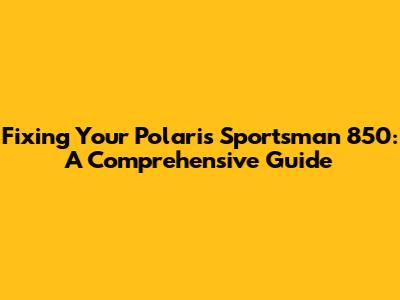 Fixing Your Polaris Sportsman 850: A Comprehensive Guide