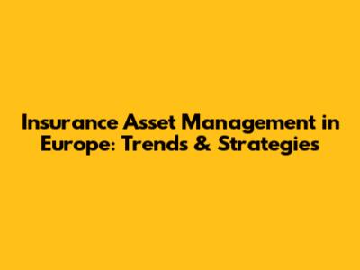 Insurance Asset Management In Europe: Trends & Strategies