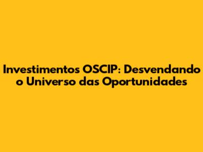 Investimentos OSCIP: Seu Guia Completo E Descomplicado