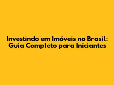 Investindo Em Imóveis No Brasil: Guia Completo Para Iniciantes