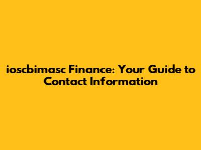 Ioscbimasc Finance: Your Guide To Contact Information