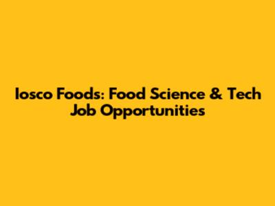 Iosco Foods: Food Science & Tech Job Opportunities