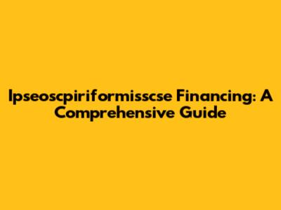 Ipseoscpiriformisscse Financing: A Comprehensive Guide
