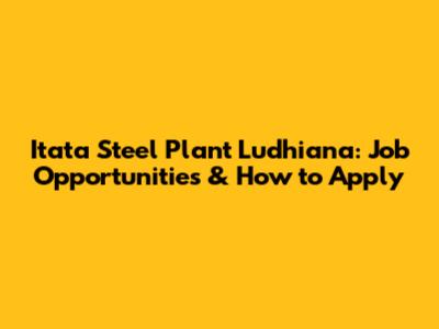 Itata Steel Plant Ludhiana: Job Opportunities & How To Apply