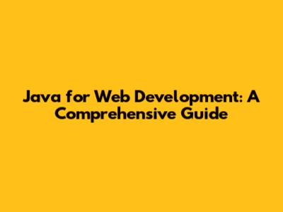 Java For Web Development: A Comprehensive Guide