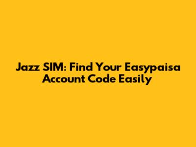 Jazz SIM: Find Your Easypaisa Account Code Easily