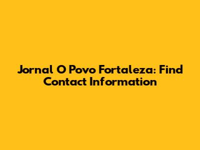 Jornal O Povo Fortaleza: Find Contact Information