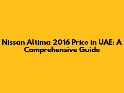 Nissan Altima 2016 Price In UAE: A Comprehensive Guide