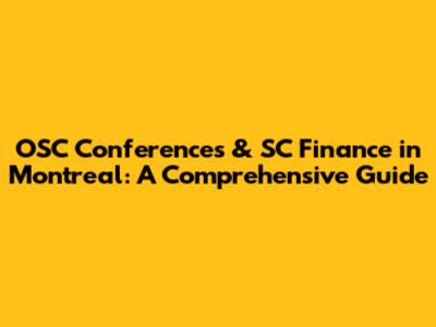 OSC Conferences & SC Finance In Montreal: A Comprehensive Guide