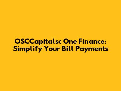 OSCCapitalsc One Finance: Simplify Your Bill Payments