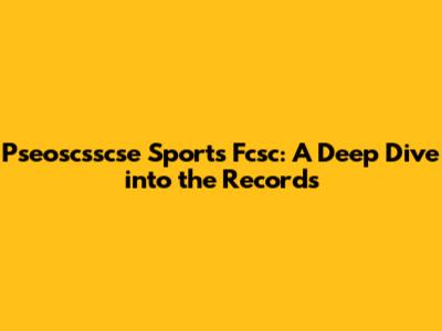 Pseoscsscse Sports Fcsc: A Deep Dive Into The Records