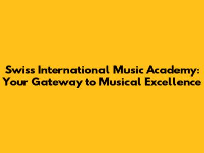 Swiss International Music Academy: Your Gateway To Musical Excellence