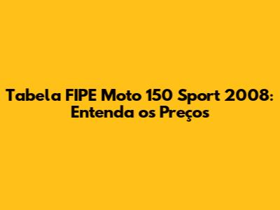 Tabela FIPE Moto 150 Sport 2008: Preços