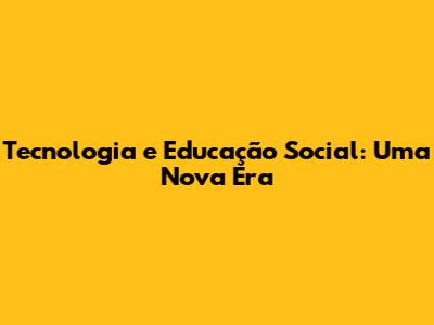 Tecnologia E Educação Social: Uma Nova Era