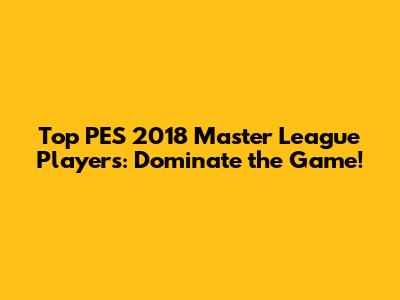 Top PES 2018 Master League Players: Dominate The Game!