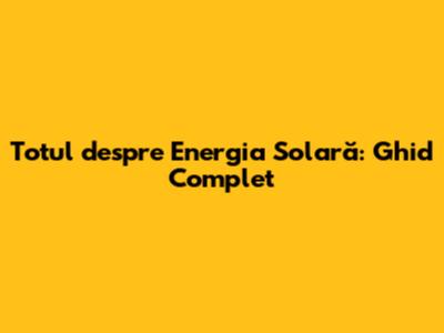 Totul Despre Energia Solară: Ghid Complet