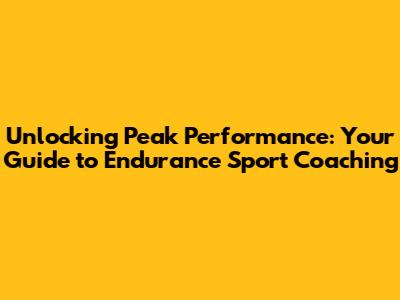 Unlocking Peak Performance: Your Guide To Endurance Sport Coaching