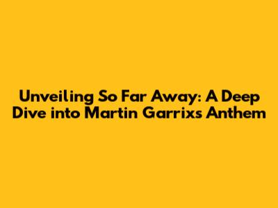 Unveiling 'So Far Away': A Deep Dive Into Martin Garrix's Anthem