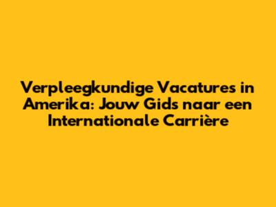 Ben je een verpleegkundige die droomt van een carrière in het buitenland? Amerika biedt talloze mogelijkheden voor verpleegkundigen die op zoek zijn naar nieuwe uitdagingen en een andere levensstijl. In dit artikel duiken we diep in de wereld van verpleegkundige vacatures in Amerika, bespreken we de vereisten, de voordelen en geven we je praktische tips om jouw droombaan te vinden. Of je nu een ervaren professional bent of net begint, deze gids helpt je op weg naar een succesvolle carrière als verpleegkundige in de Verenigde Staten. Amerika staat bekend om zijn geavanceerde gezondheidszorg en de hoge vraag naar gekwalificeerde verpleegkundigen, waardoor het een aantrekkelijke bestemming is voor internationale zorgprofessionals. De diversiteit aan culturen en de mogelijkheid om te werken in toonaangevende ziekenhuizen en klinieken maken het een unieke kans om je professionele horizon te verbreden en je persoonlijke groei te stimuleren. Met de juiste voorbereiding en de juiste informatie kun je de overstap maken en een succesvolle carrière opbouwen in de Amerikaanse gezondheidszorg. Dus, waar wacht je nog op? Lees verder en ontdek hoe jij jouw droom van een verpleegkundige carrière in Amerika kunt realiseren.